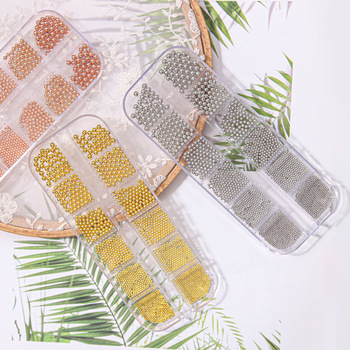 Новинка, роскошные 3D ювелирные изделия для ногтей, маленький стальной шар, 12 ячеек, в коробке, золото, серебро, смешанный Металлический Набор для ногтей, украшения для ногтей