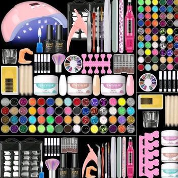 Набор из 42 цветов глиттерной пудры для ногтей, акриловой пудры, накладных ногтей и лампы для маникюра для начинающих, для домашнего использования