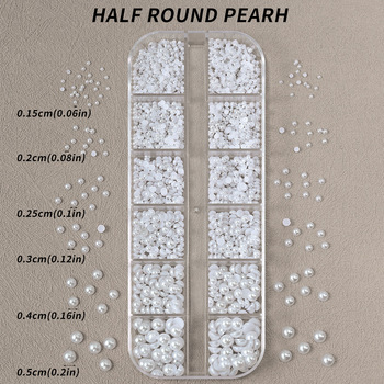 12-Grid Pearl Nail Ornaments Full Circle Semi-Circular 1.5-5mm Full Mix Japanese 3D Nail Drill Made of Plastic